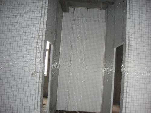8. 在泰柏板墙上安装的各种管线,较细的管线,可直接穿在钢丝网与聚苯乙烯泡沫板中间的缝隙间,较粗的管线在安装时先把钢丝网剪开,去掉适当的泡沫板,放入管线后用平网覆盖,安装接线盒亦如此。